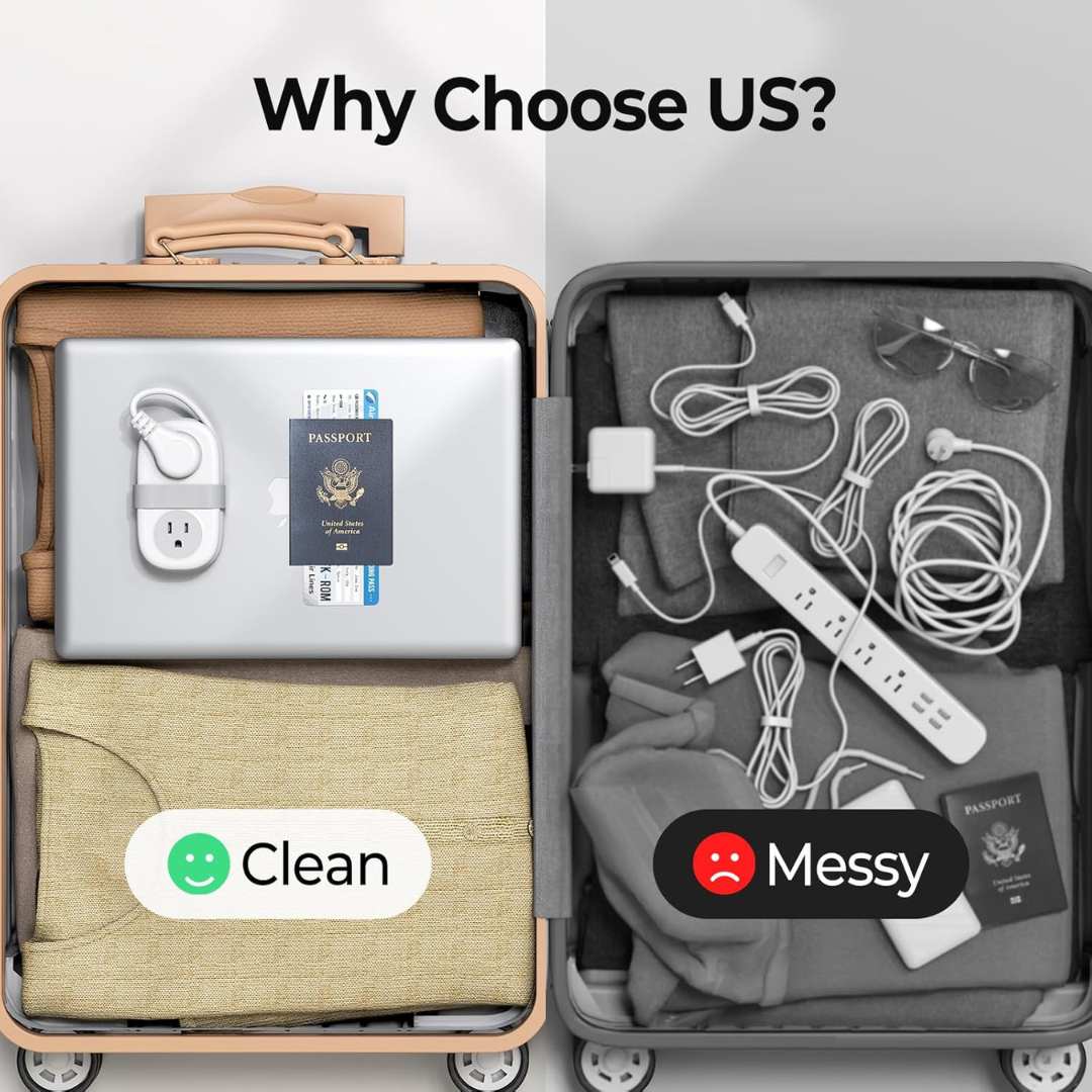 PowerPal™ gives you multiple AC outlets + fast USB ports in a palm-sized design, keeping everything powered in one clean, organized space.